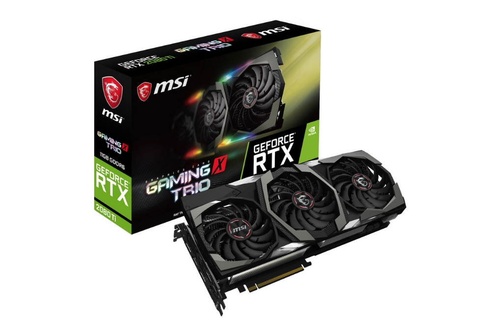 One Of The World’s most powerful Graphics Cards , The GeForce RTX 20 Series GAMING TRIO is the return of MSI’s mighty three-fan graphics card. Only reserved for the most powerful of GPU’s, the TRIO Series features a mix of black and gunmetal grey with elegant shapes and a classy brushed metal backplate that matches the front. This looks great with the gorgeous RGB effects found on the front and the side of the card, which can be controlled using MSI’s Mystic Light software and made to synchronize with other RGB components .